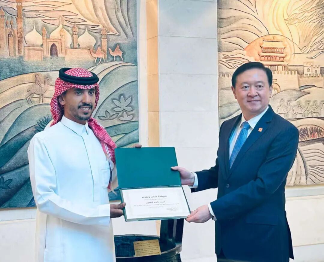 19 نوفمبر 2025/صحيفة الشعب اليومية أونلاين/ استقبل السفير الصيني لدى المملكة العربية السعودية، تشانغ هوا، وأعضاء السفارة في مقر السفارة بالرياض، يوم 18 نوفمبر الجاري ثلاثة أصدقاء سعوديين مميزين من محافظة الشملي بمنطقة حائل، أحمد ناصر العنزي، وحمود مسامح العنزي، ومبارك فريح العنزي، تقديرًا لجهودهم البطولية في إنقاذ وافدين صينيين إثر انقلاب مركبتهم التي جرفتها السيول الناتجة عن الأمطار التي شهدتها المحافظة مؤخرًا.