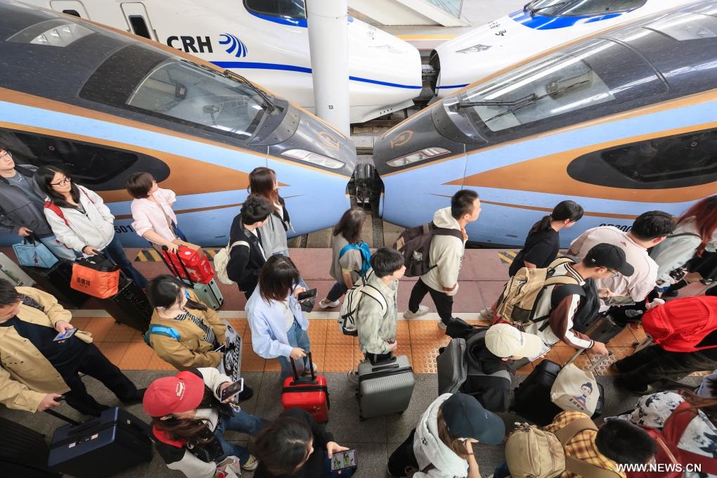 في الصورة الملتقطة يوم 8 أكتوبر 2025، مسافرون في محطة نانجينغ للسكك الحديدية في مقاطعة جيانغسو بشرقي الصين، حيث تشهد البلاد ذروة رحلات الإياب للمسافرين مع انتهاء عطلة العيد الوطني وعيد منتصف الخريف يوم الأربعاء الماضي، والتي استمرت من الأول إلى الثامن من أكتوبر الجاري. |